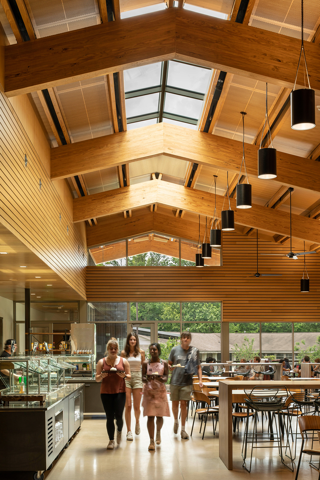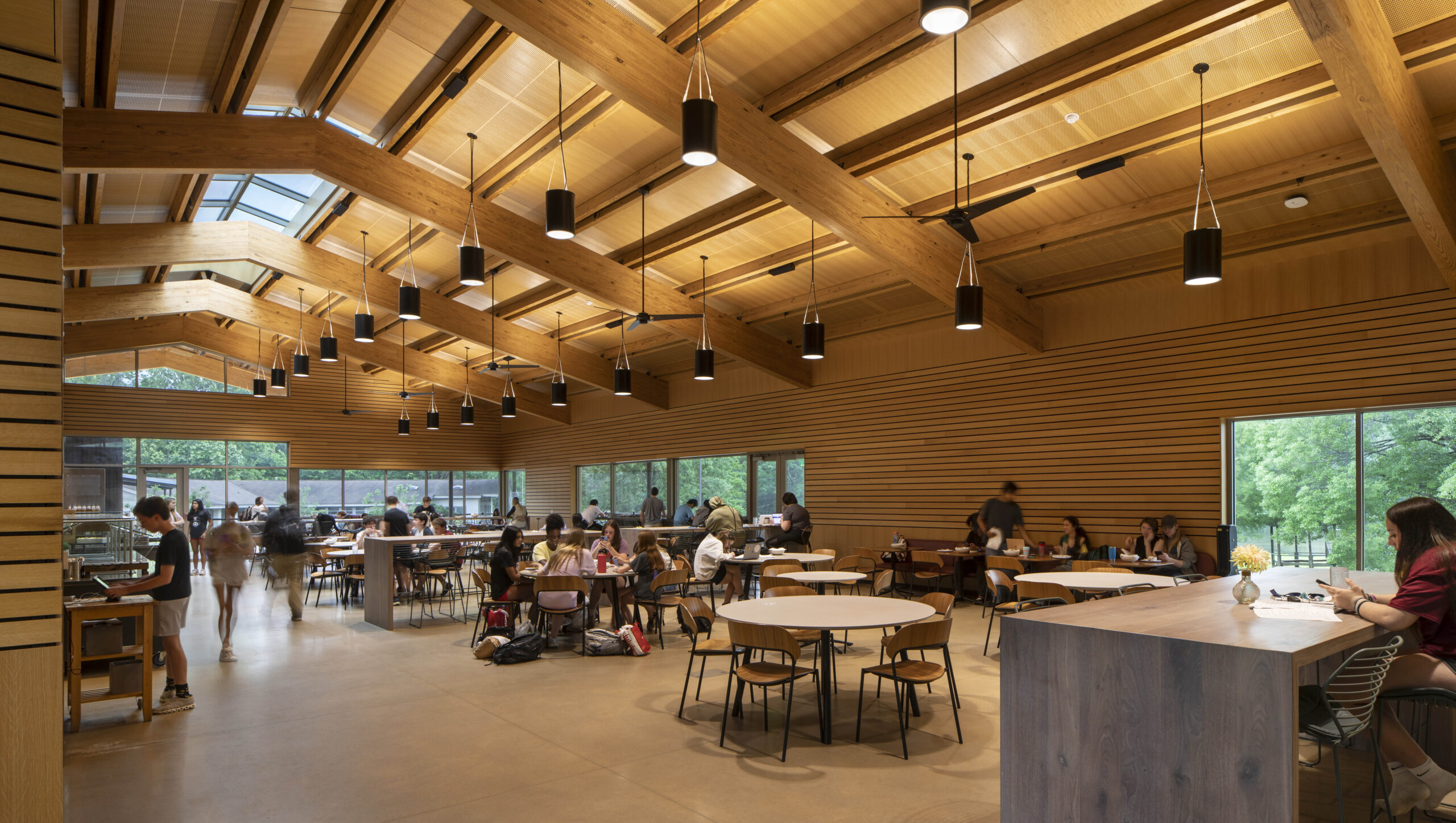 The Indian Springs School Kayser/Samford Community Commons, the second phase of Indian Springs School’s 2012 Master Plan, serves as the campus’s primary dining and social hub, designed to foster daily connection among students and faculty. Rooted in the landscape and oriented toward the campus lake, the building pairs warm, light-filled interiors with durable exterior materials, blending craftsmanship, comfort, and a deep respect for place. The jury noted that this project is a “thoughtful integration of material warmth, daylight, and landscape connection that establishes a welcoming environment that enhances student and faculty life.”