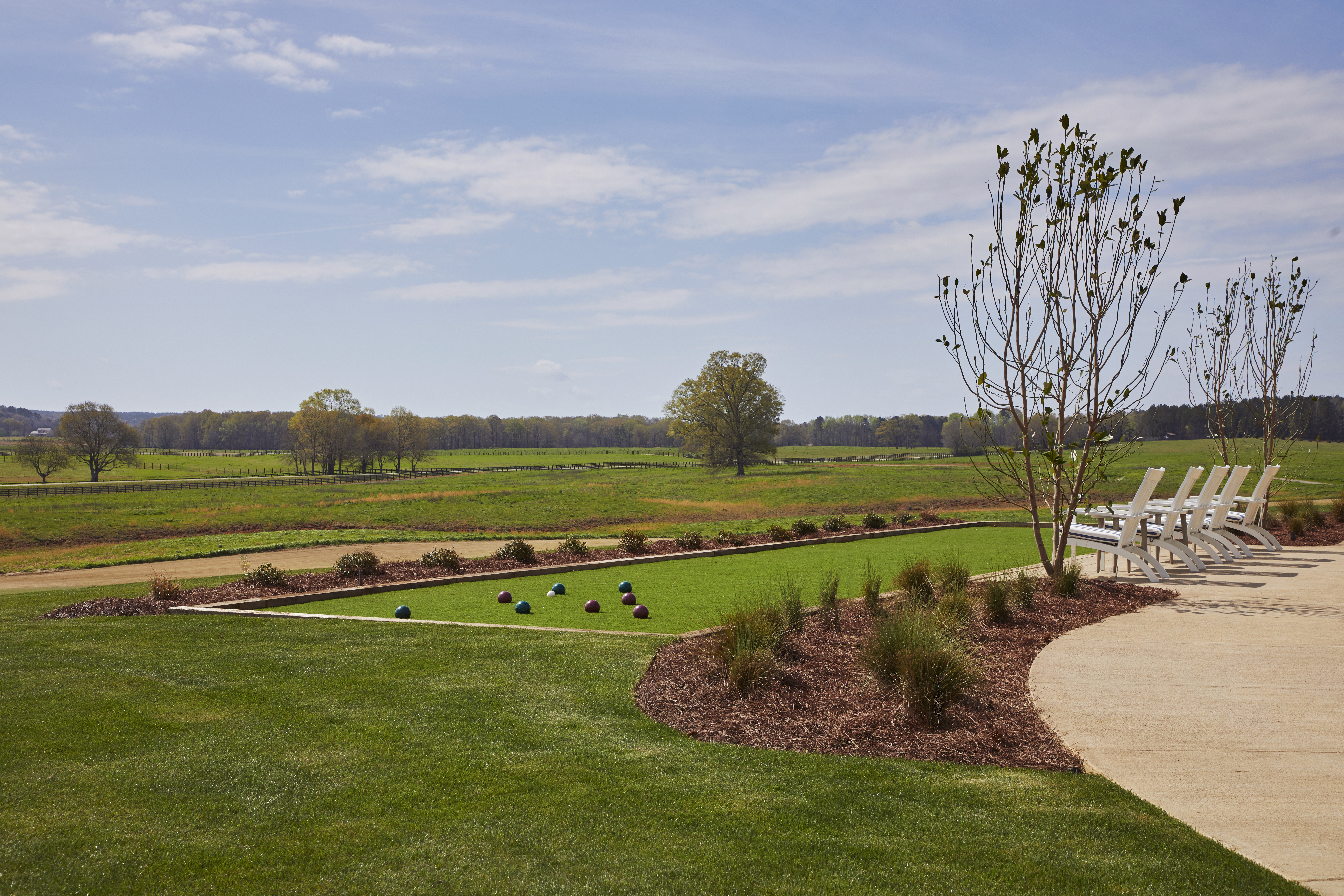 Pursell Farms is an event retreat nestled in the foothills of the Appalachian Mountains. The 3,200 acre farm is the site of a multi-faceted entertainment and meeting venue with an 18-hole golf course, sportclay shooting grounds, wedding facilities, restaurants, and overnight facilities. The Inn at Pursell Farms is a 40 room lodge sited along the 18th fairway with views down the valley. A renovated hospitality anchor building houses a restaurant and a pub. Each open to deep porches and terraces that flow out to putting greens and the pool.