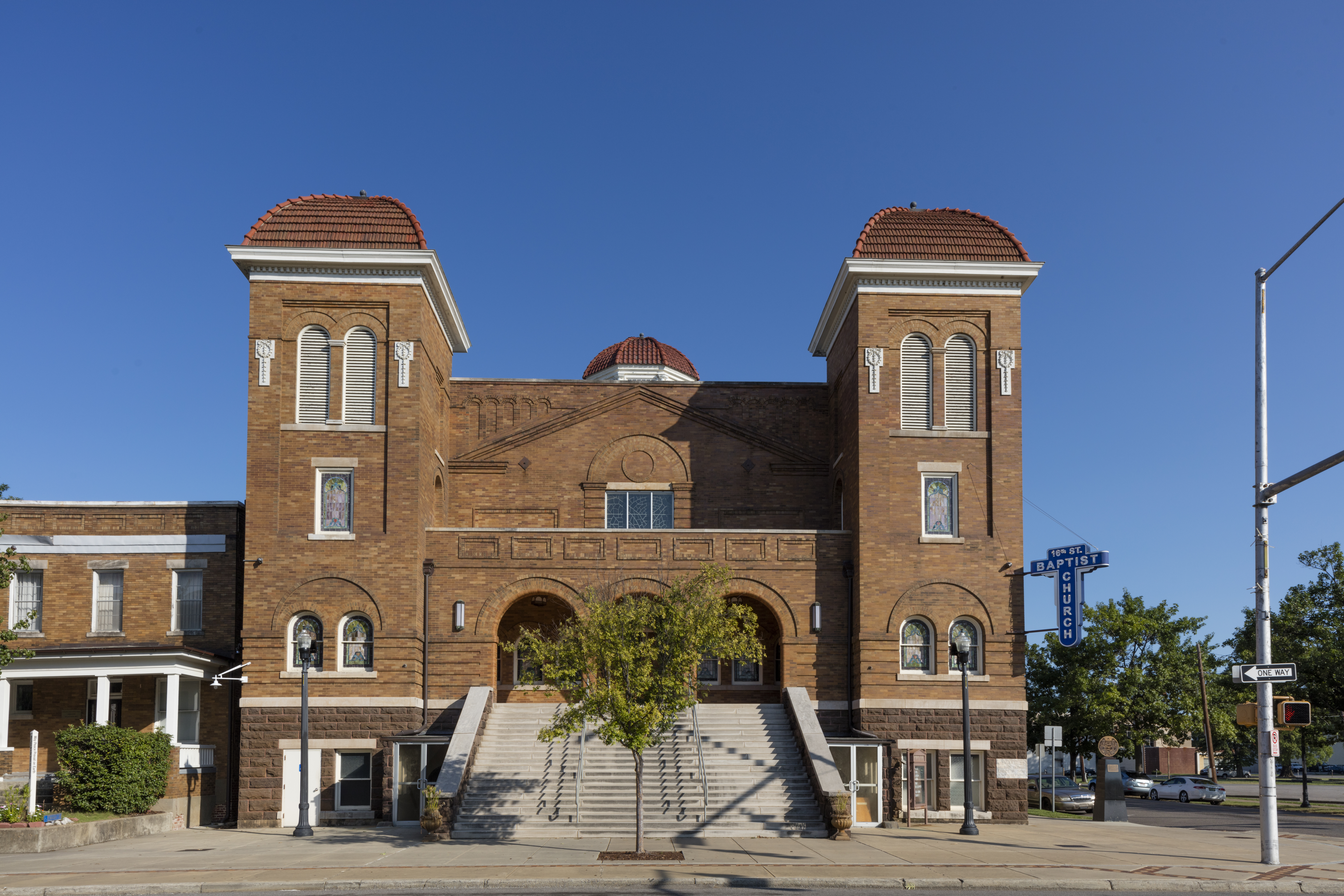 On September 15, 1963 The Sixteenth Street Baptist Church was bombed killing four girls and galvanizing the Civil Rights Movement. In 2005, The Sixteenth Street Foundation initiated the restoration and preservation of the Church and Annex, hiring ArchitectureWorks, a local construction company and a historic preservation firm. The rehabilitation and restoration work was completed in two phases. Phase I encompassed extensive foundation repairs, storm water collection systems installation, sidewalks and landscaping. Phase II included restoration and repair of masonry, exterior windows and doors, roofing and significant architectural features. In 2006 the Church received National Landmark designation by the United States Department of the Interior because of its significance in the Civil Rights movement.