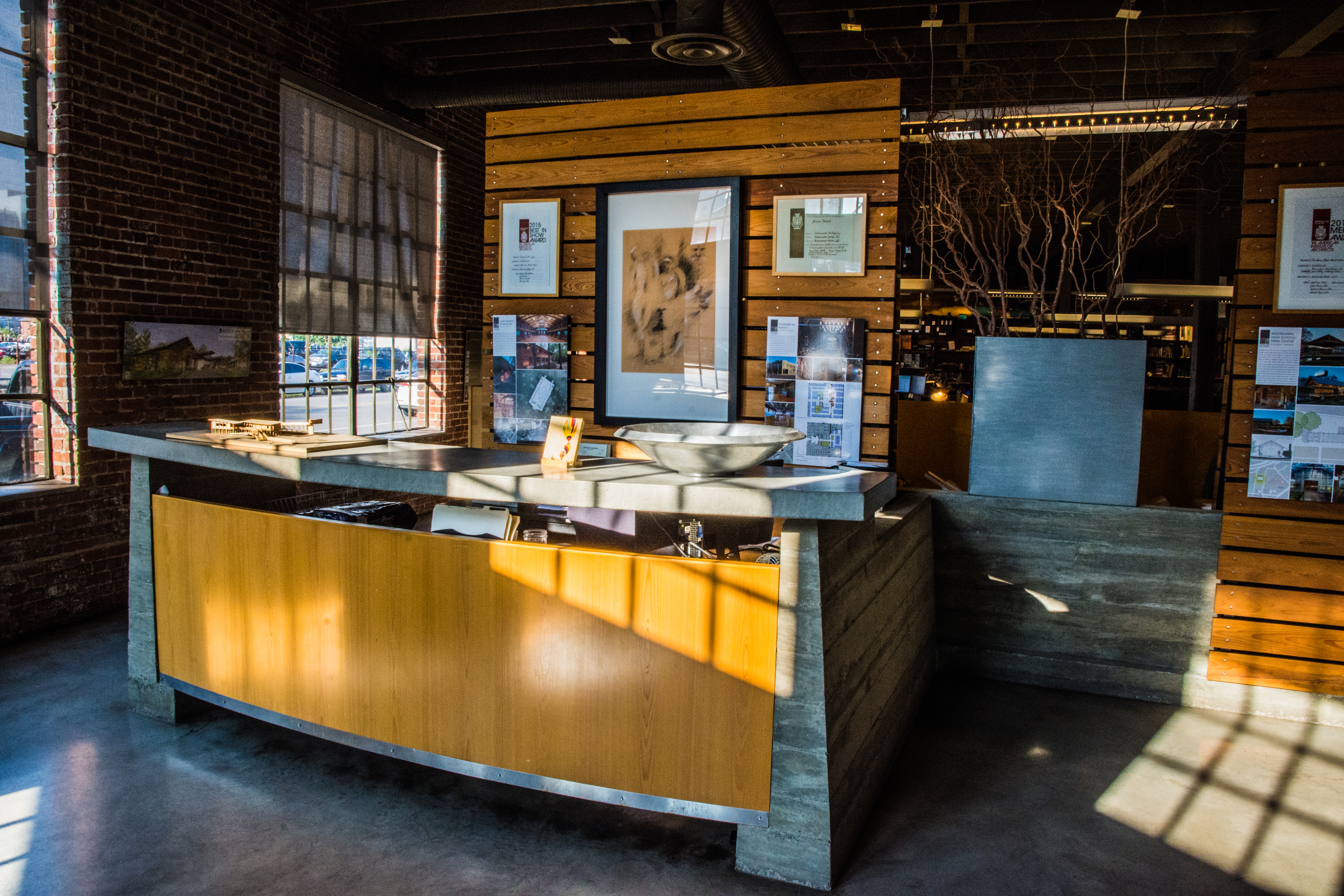 Acquiring the buildings in 1999, ArchitectureWorks sought to establish an environment that would encourage the community to become exposed to and engaged in the practice of architecture. Conceived of as a complex of inter-related spaces, the studio and a multi-function space each open to and are connected by an open-air courtyard, which, in turn, opens to the street. The large open design of the studio, with movable furniture and low partitions separating the individual workspaces, emphasizes the collaborative nature of design that is core to ArchitectureWorks’ process. The importance of sustainable design was also articulated through the use of natural light and reclaimed materials.