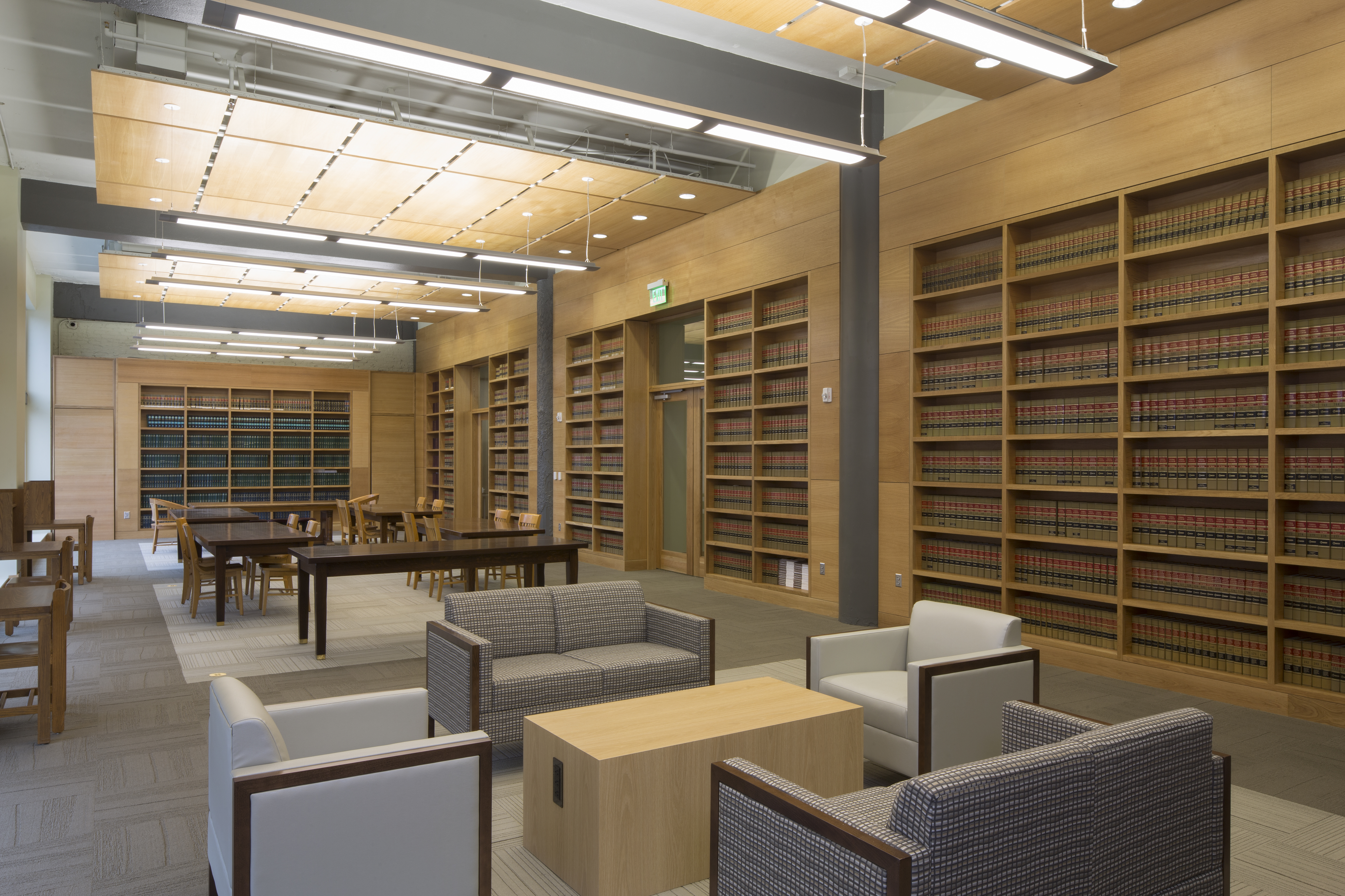 Established in 1915, The Birmingham School of Law, serves as one of the largest law schools in Alabama. In 2012, the School’s Board decided to purchase a 1920’s car dealership building that would serve as its new home. The building has a robust concrete structure that is contrasted by new wood and glass walls on the main level. A reading room and student commons lined with old law books present a vibrant transparency of the building at the street level. A new lecture theater utilizes the structure of the original car ramp inside the building. A new mock trial courtroom serves as the focal point off the main lobby.