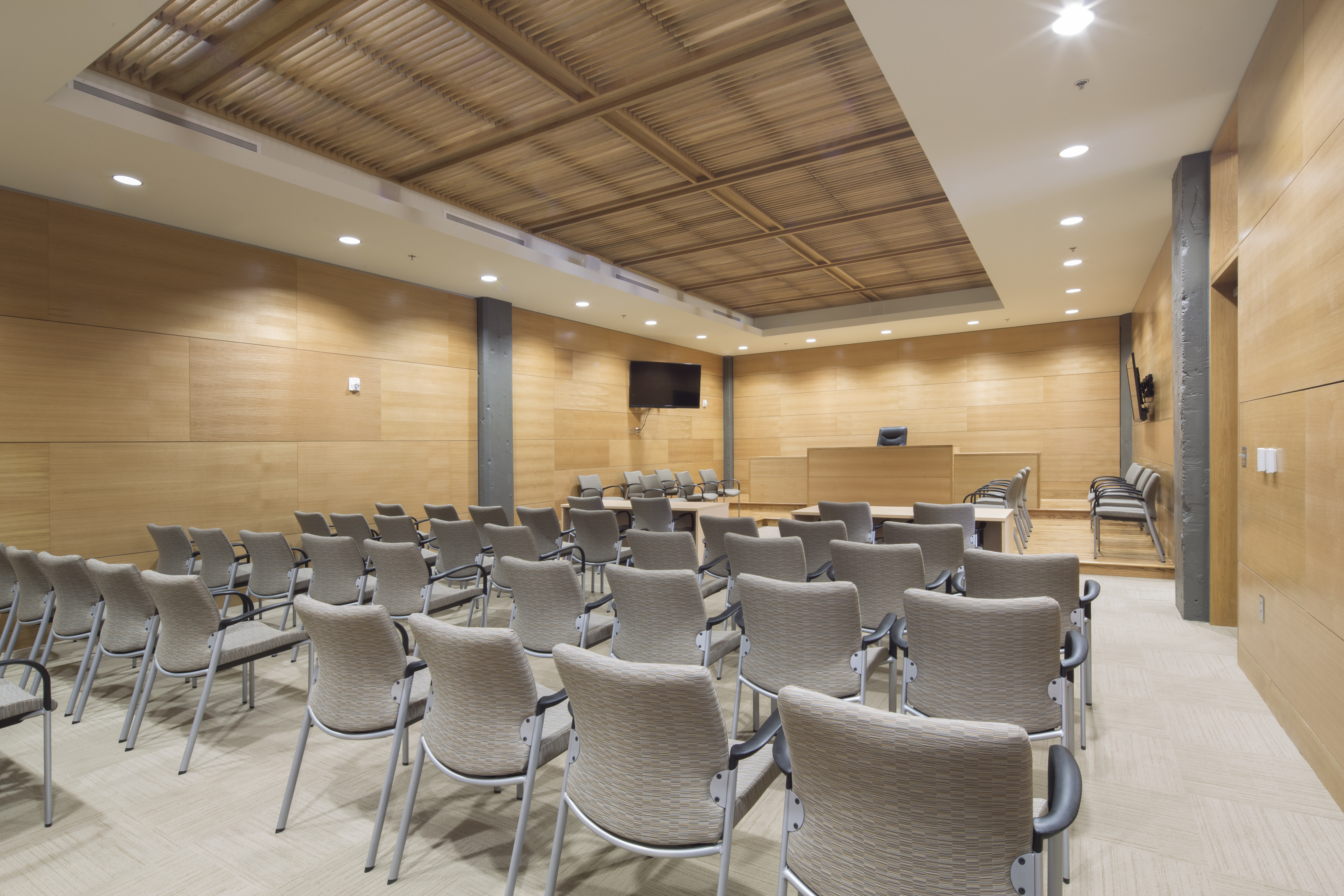 Established in 1915, The Birmingham School of Law, serves as one of the largest law schools in Alabama. In 2012, the School’s Board decided to purchase a 1920’s car dealership building that would serve as its new home. The building has a robust concrete structure that is contrasted by new wood and glass walls on the main level. A reading room and student commons lined with old law books present a vibrant transparency of the building at the street level. A new lecture theater utilizes the structure of the original car ramp inside the building. A new mock trial courtroom serves as the focal point off the main lobby.