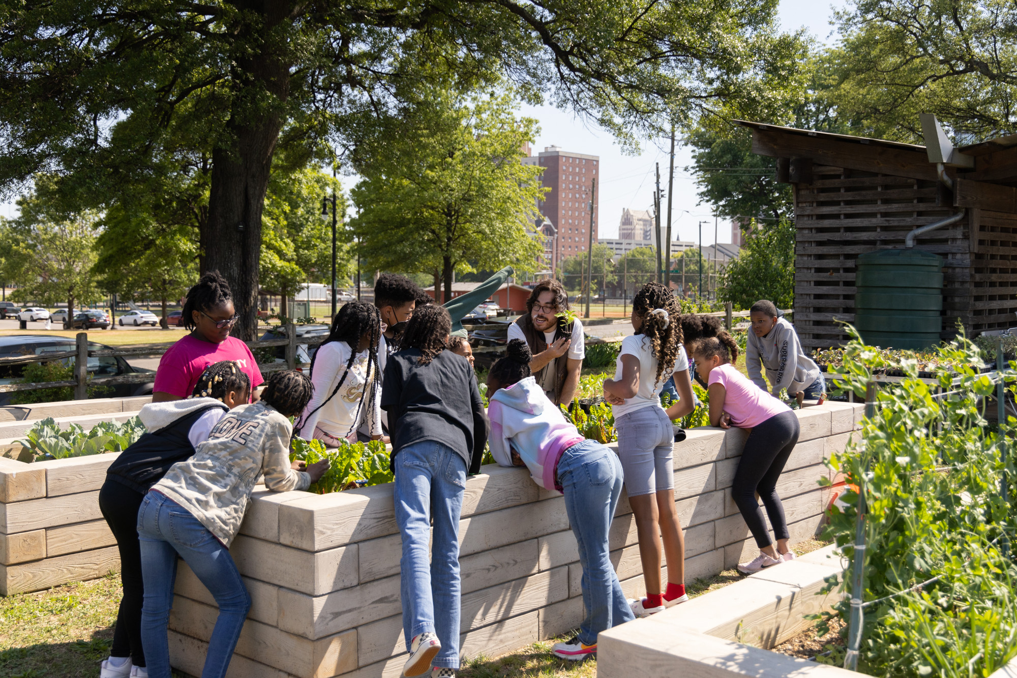 Jones Valley Teaching Farm’s Center for Food Education serves as the headquarters for the non-profit’s seed-to-plate educational mission throughout the Birmingham City Schools system. The Center is located on single square block in downtown Birmingham. The buildings are sited within one quadrant at the northwest corner, leaving the remaining three southern-facing quadrants for farming and community outreach raised beds.