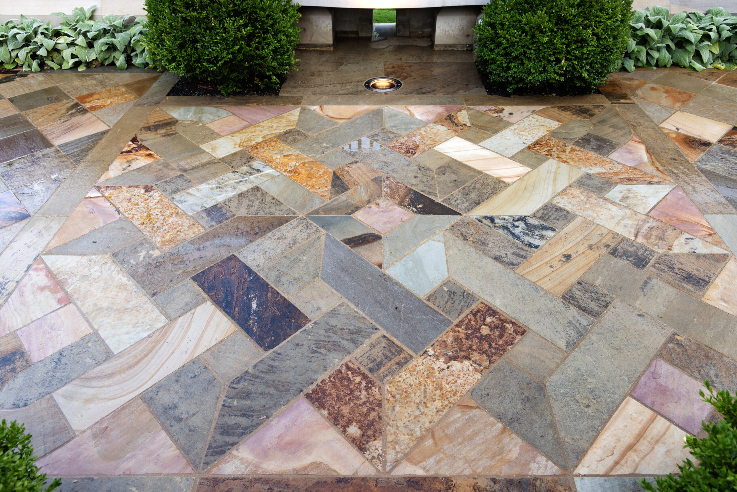New stonework weaves seamlessly with the Sanctuary and Cloister, unifying the new construction with the existing. The intricate paving at the center of the Columbarium is based on an endless knot pattern, a traditional symbol of eternity in the Celtic decorative arts.