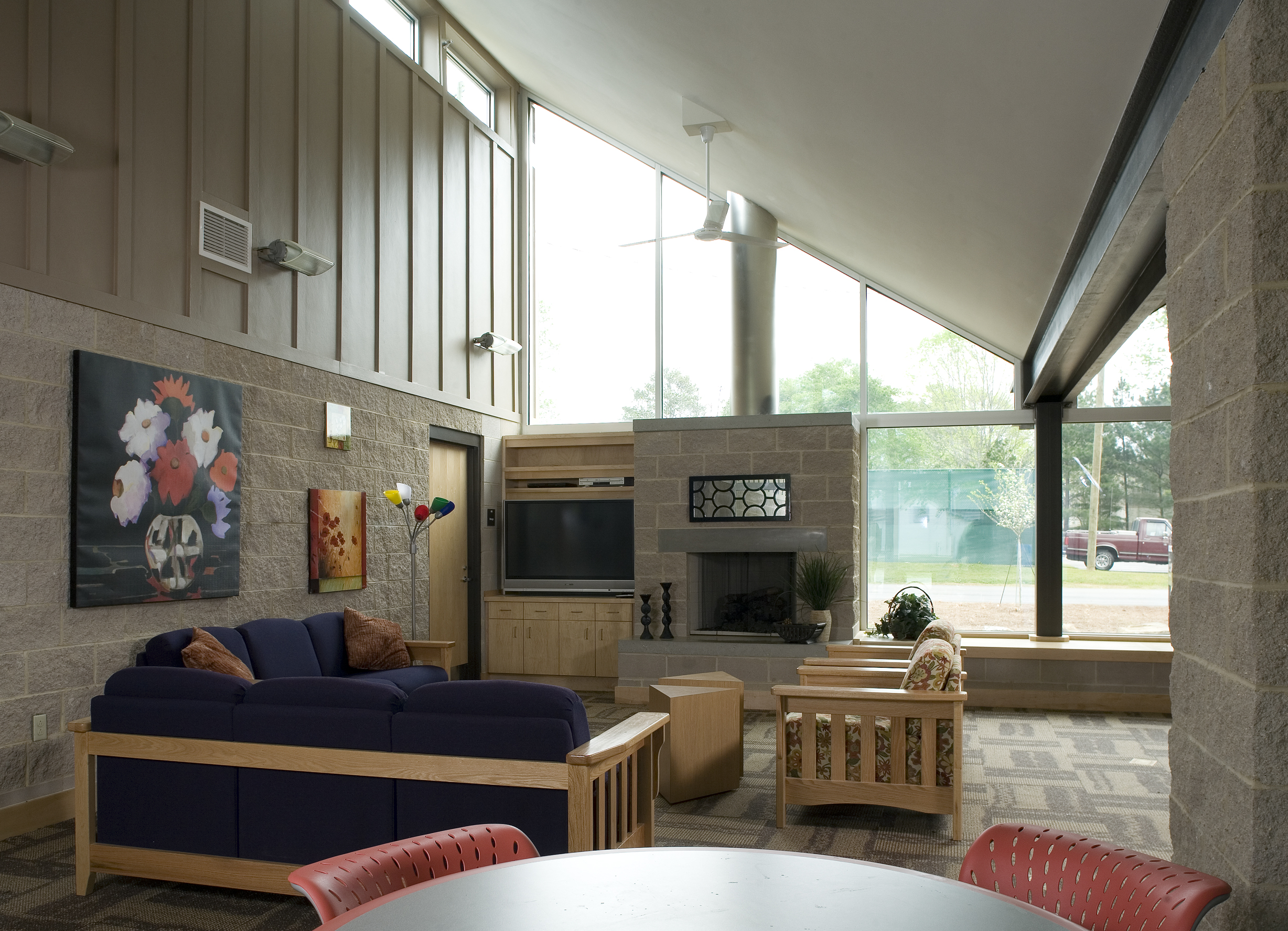 The School offers boarding for about 100 boys and girls. Our firm designed a pair of dormitories that embrace a crescent commons space. The Crescent commons is dedicated wholly to pedestrian and student-centered activities, pushing all vehicular traffic to the outer edge. Faculty houses anchor each end of the dorms, while a light-filled common room provides a central entry and gathering space.
