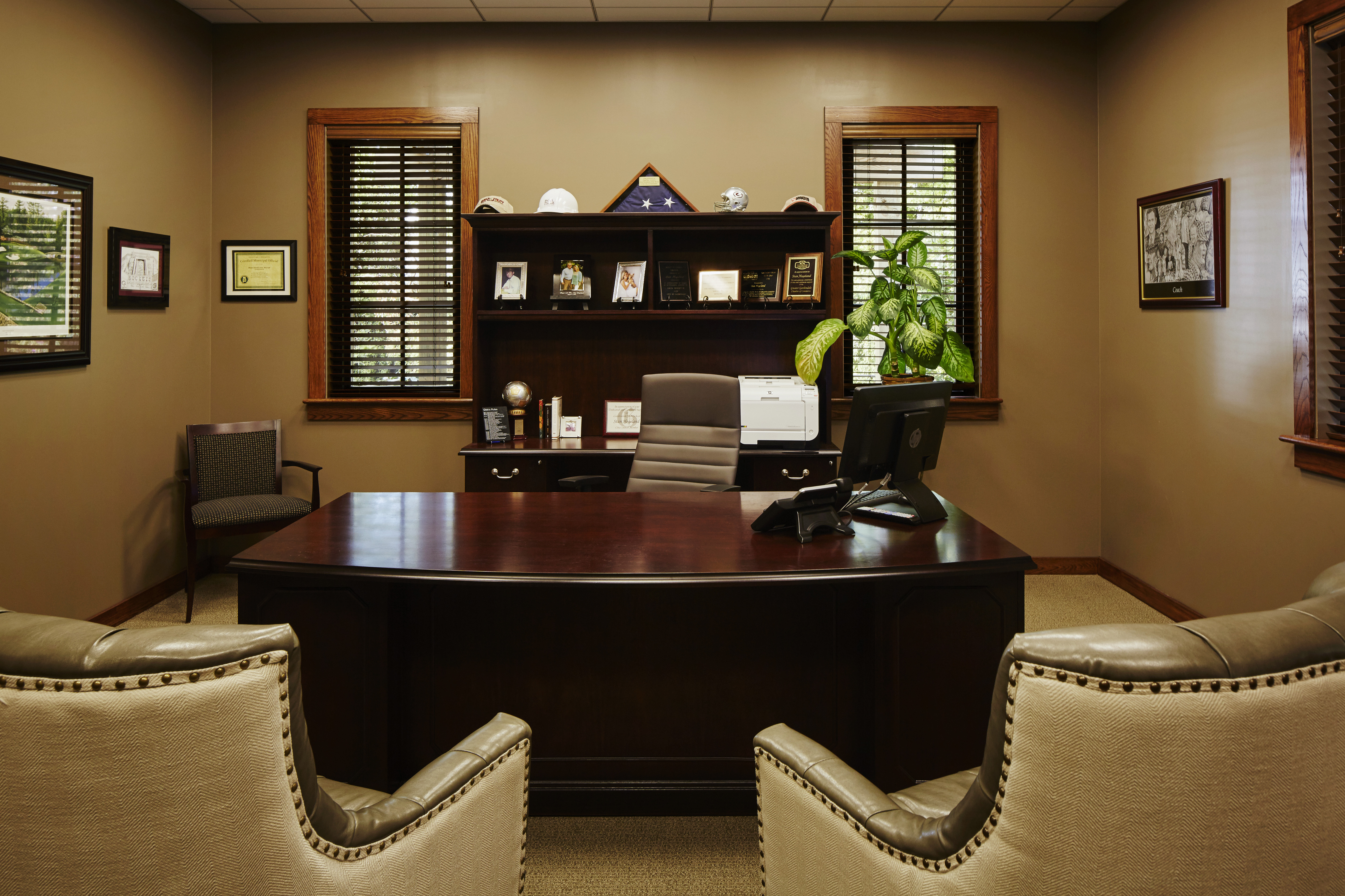 ArchitectureWorks took great care in every detail, from ensuring the new building would accommodate filing and storage needs, to designing the Council Chambers’ desk so that each member could see and be seen, and to selecting furniture that would meet the client’s aesthetic and budgetary wishes.