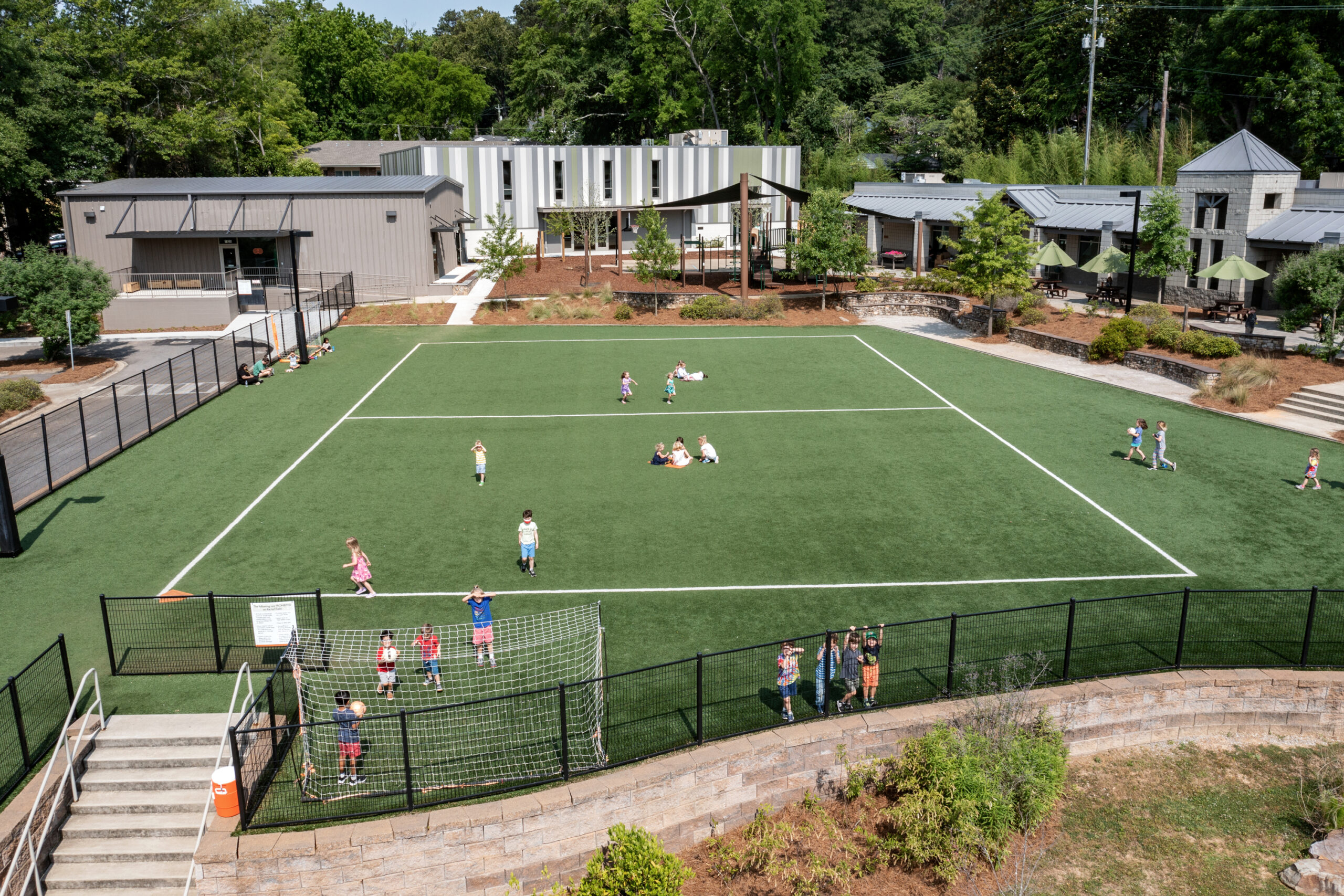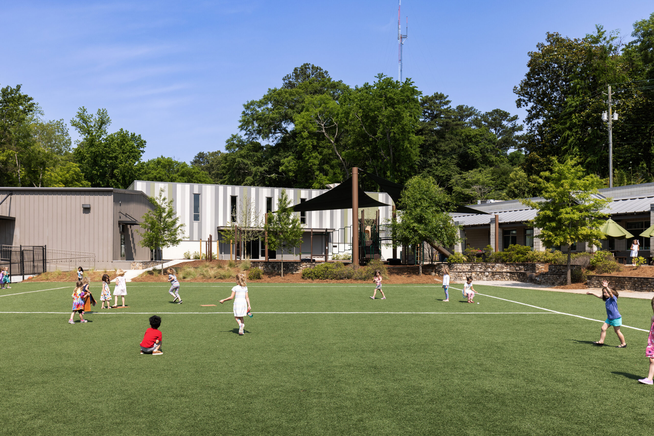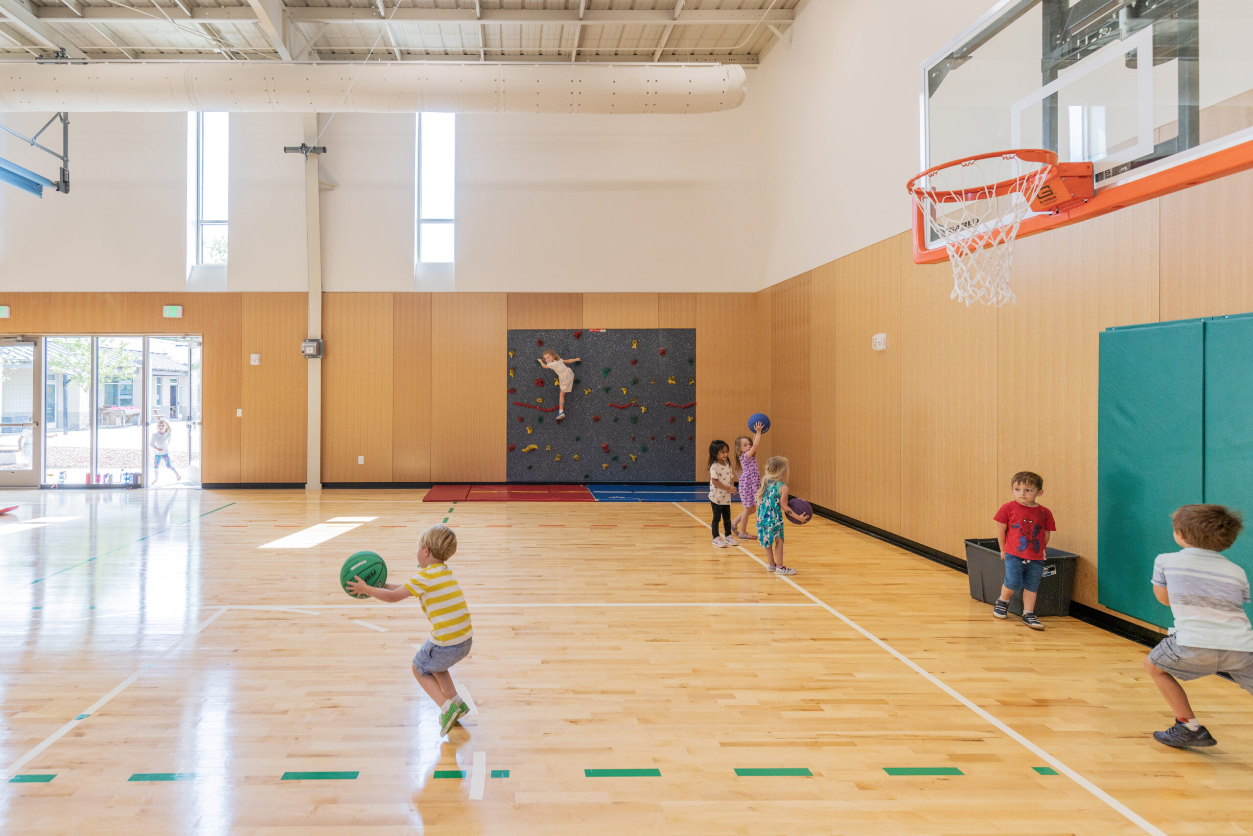 A new gymnasium anchors the west edge of this campus completing the masterplan and fortifying the school’s mission of “Loving Learning, Growing Leaders, Teaching Excellence” by focusing on the needs of the students and providing adequate resources for the teachers and staff. The old gym nearby is renovated into an Erdkinder space and multi-use classrooms.