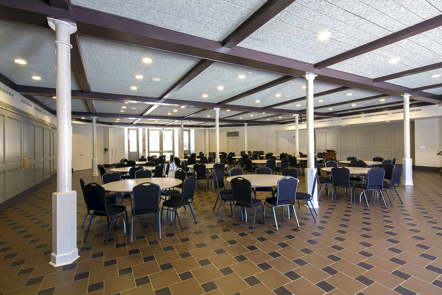 In a more recent phase, ArchitectureWorks focused on improving Fellowship Hall and expanding its capacity to serve multiple functions. A new commercial kitchen serves the church’s licensed daycare and the congregation, while a separate volunteer kitchen provides meals and other services for a rapidly growing ministry to the underprivileged. Other work included adding a formal serving area, laundry facilities, office space, and a new Bride’s Room. New exterior spaces connect the fellowship hall to the exterior including an outdoor terrace and dining space to the north, and a new Columbarium and prayer garden to the south.