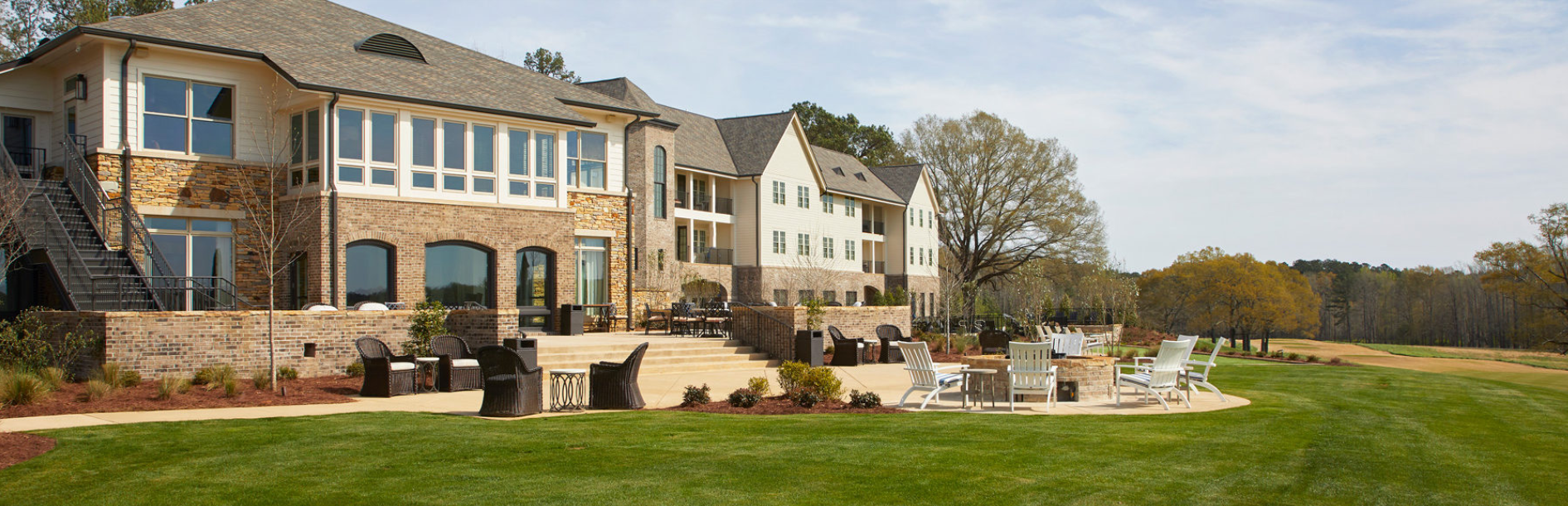 Pursell Farms is an event retreat nestled in the foothills of the Appalachian Mountains. The 3,200 acre farm is the site of a multi-faceted entertainment and meeting venue with an 18-hole golf course, sportclay shooting grounds, wedding facilities, restaurants, and overnight facilities. The Inn at Pursell Farms is a 40 room lodge sited along the 18th fairway with views down the valley. A renovated hospitality anchor building houses a restaurant and a pub. Each open to deep porches and terraces that flow out to putting greens and the pool.