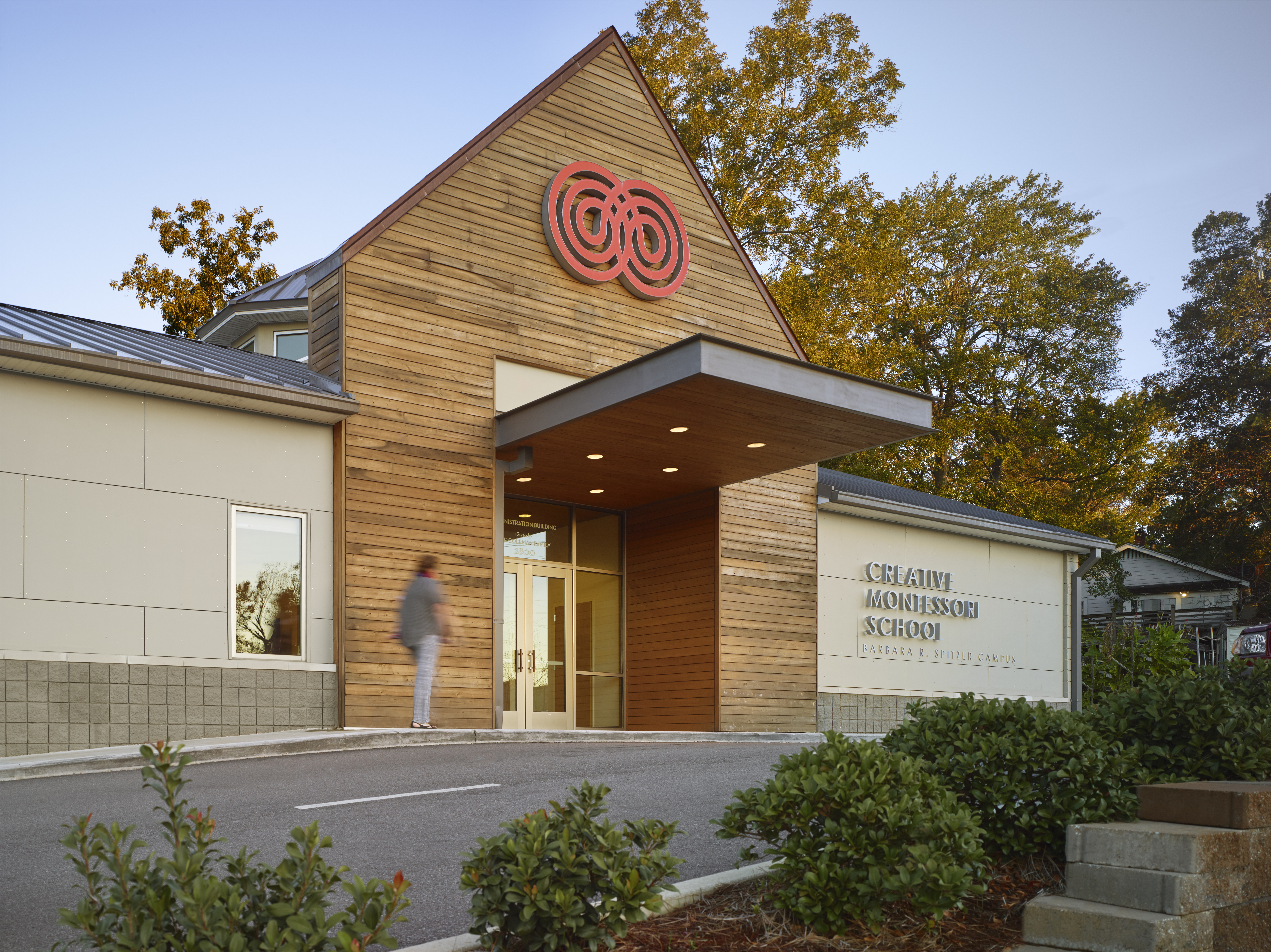 Creative Montessori School, located in Homewood, Alabama, is a private Montessori school with highly regarded toddler, preschool, and elementary education programs. The school sought to develop a master plan that more appropriately reflected its educational goals and its future plans for growth. Phase One of the master plan, shown here, includes the renovation of an existing 2500 SF library building and the construction of a new 14,000 SF preschool building. The project fortifies the school’s mission of “Loving Learning, Growing Leaders, Teaching Excellence” by focusing on the needs of the students and providing adequate resources for the teachers and staff.