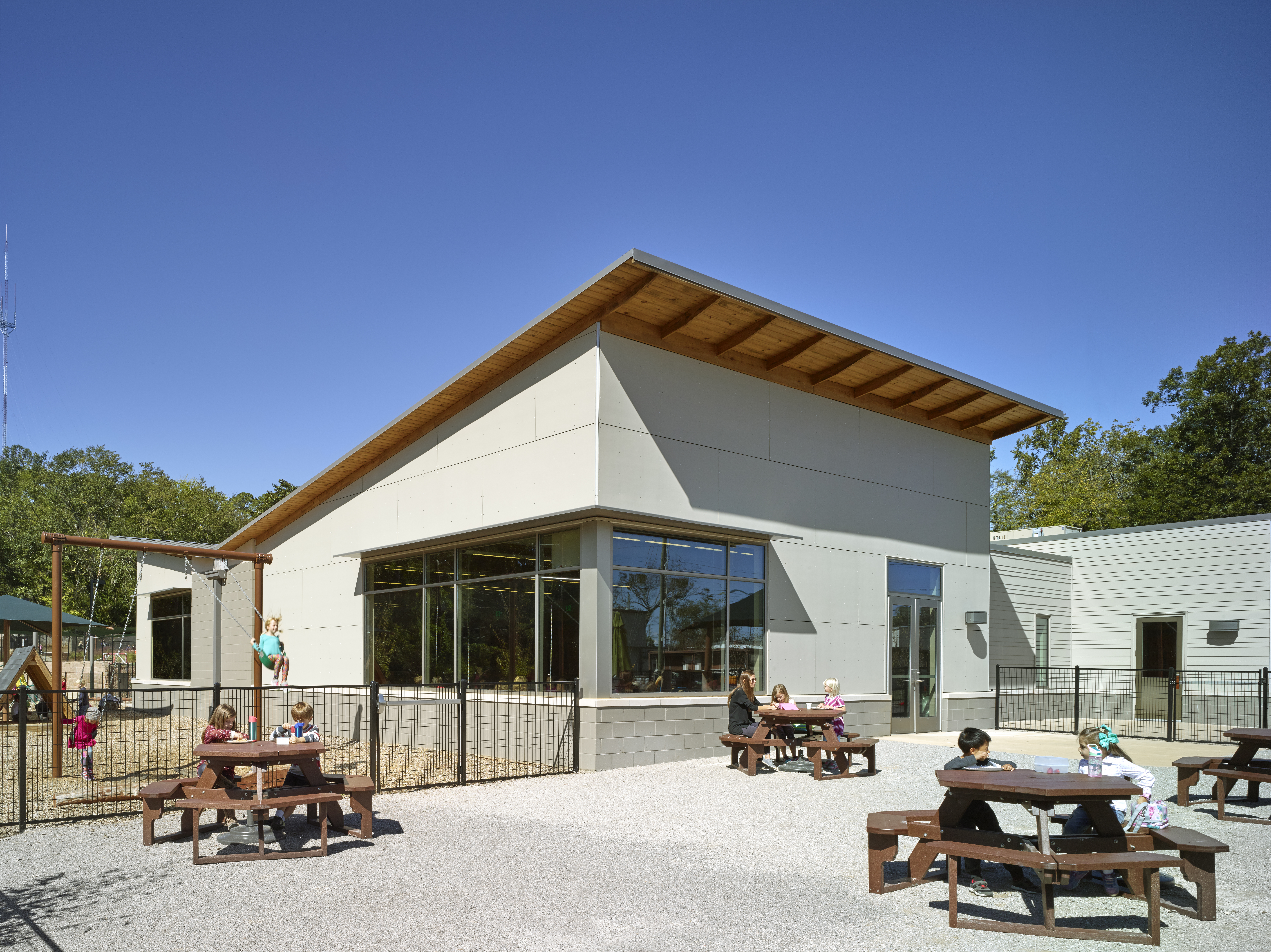Creative Montessori School, located in Homewood, Alabama, is a private Montessori school with highly regarded toddler, preschool, and elementary education programs. The school sought to develop a master plan that more appropriately reflected its educational goals and its future plans for growth. Phase One of the master plan, shown here, includes the renovation of an existing 2500 SF library building and the construction of a new 14,000 SF preschool building. The project fortifies the school’s mission of “Loving Learning, Growing Leaders, Teaching Excellence” by focusing on the needs of the students and providing adequate resources for the teachers and staff.