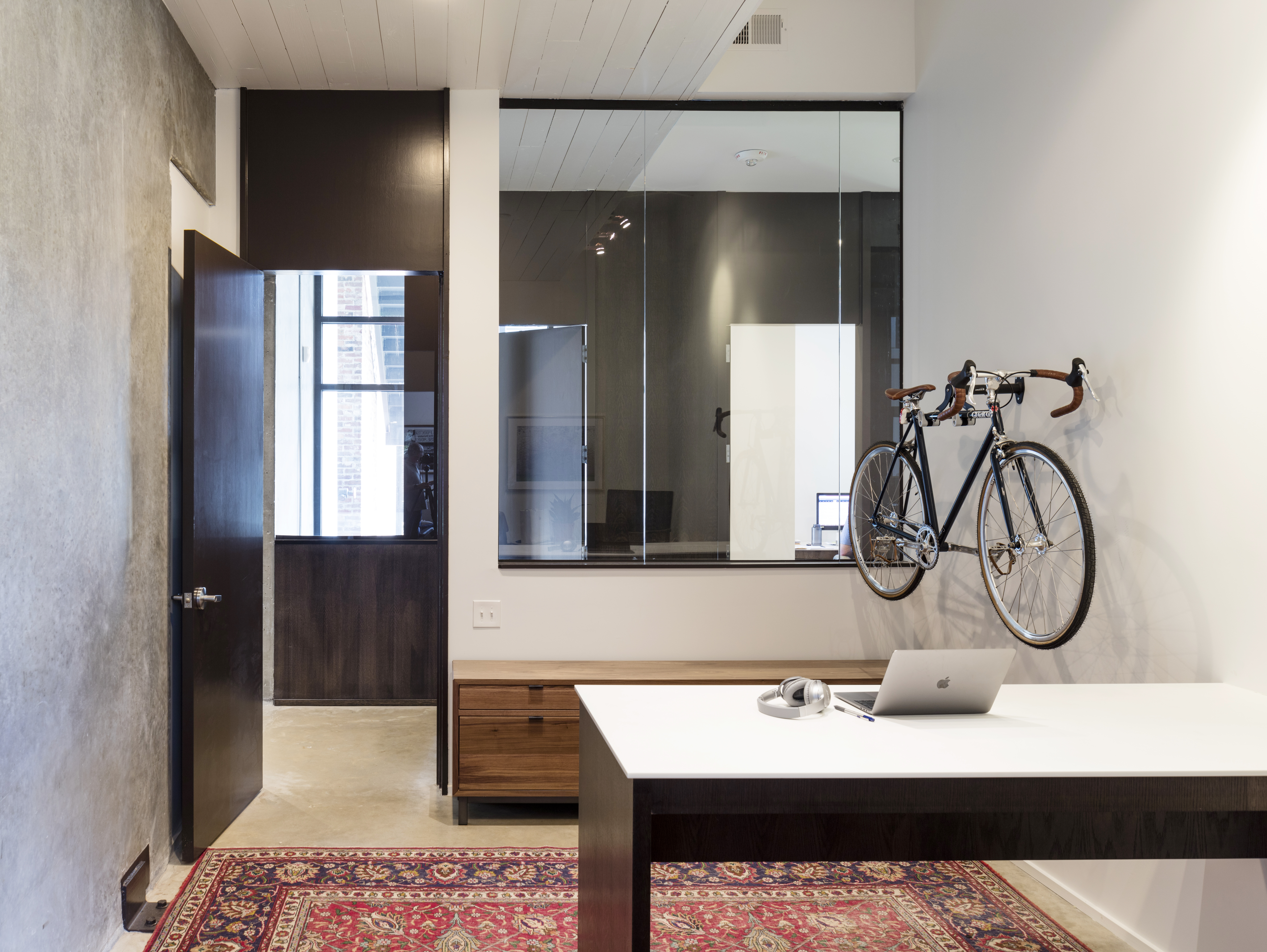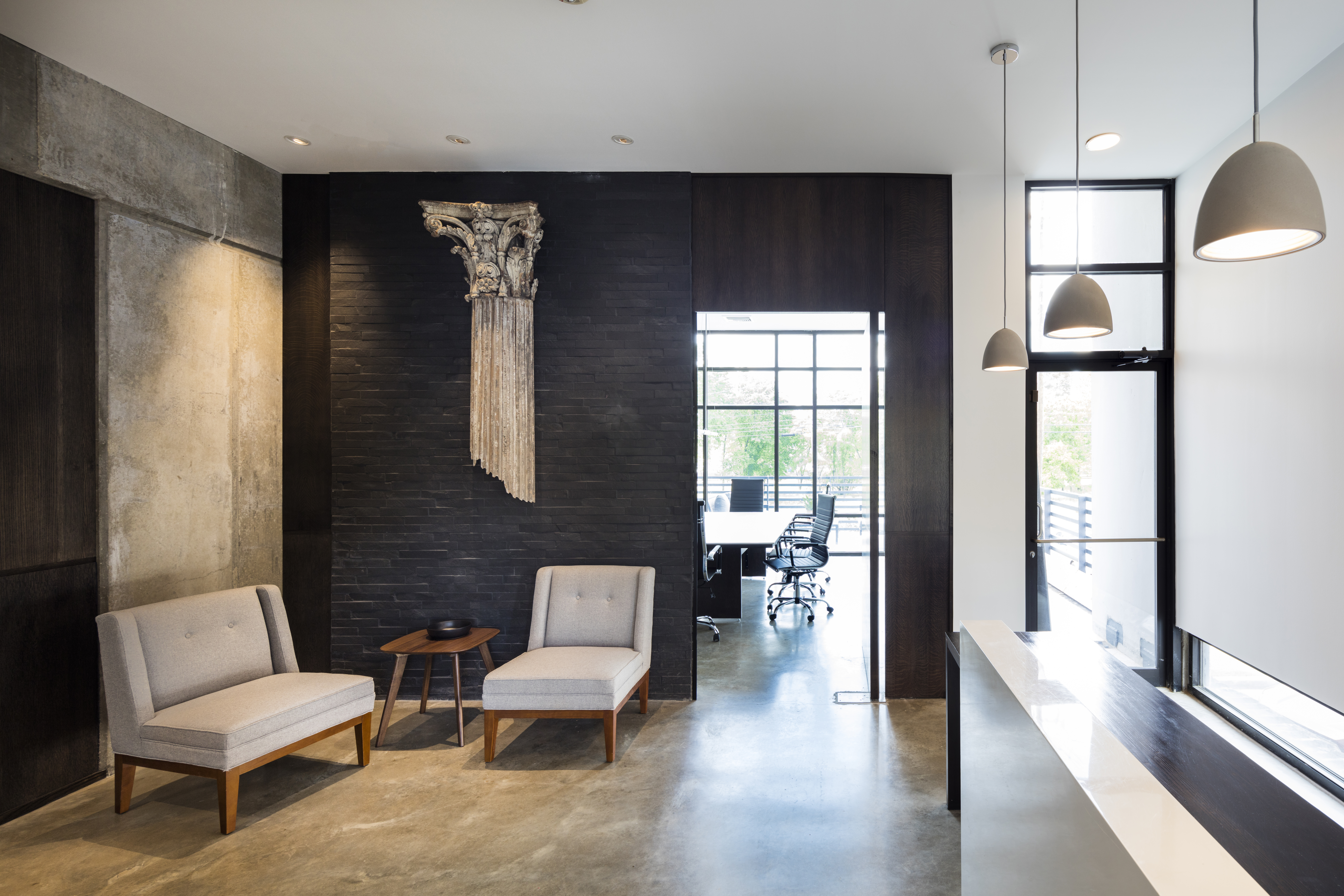 Recognizing a need among sole-practitioner attorneys for good office space and a collegial work environment, attorneys Nick Armstrong and Oscar Price worked with ArchitectureWorks to redevelop a downtown office into a great workplace. The former architecture office had an open plan that didn’t function for legal services, but it also contained significant built elements, such as large concrete walls, that offered design challenges and opportunities. Using a restrained palette of stained oak paneling & glass AW designed a modern workplace, complete with multiple meeting spaces, a lounge, and even a steam shower and beer on tap.